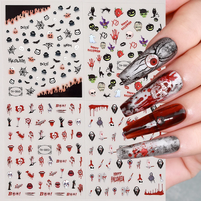 2025 Llegada Nueva Al Por Mayor Divertido Aterrador Disfraz de Halloween Fantasmas Calabazas Diseño Adhesivos para Uñas