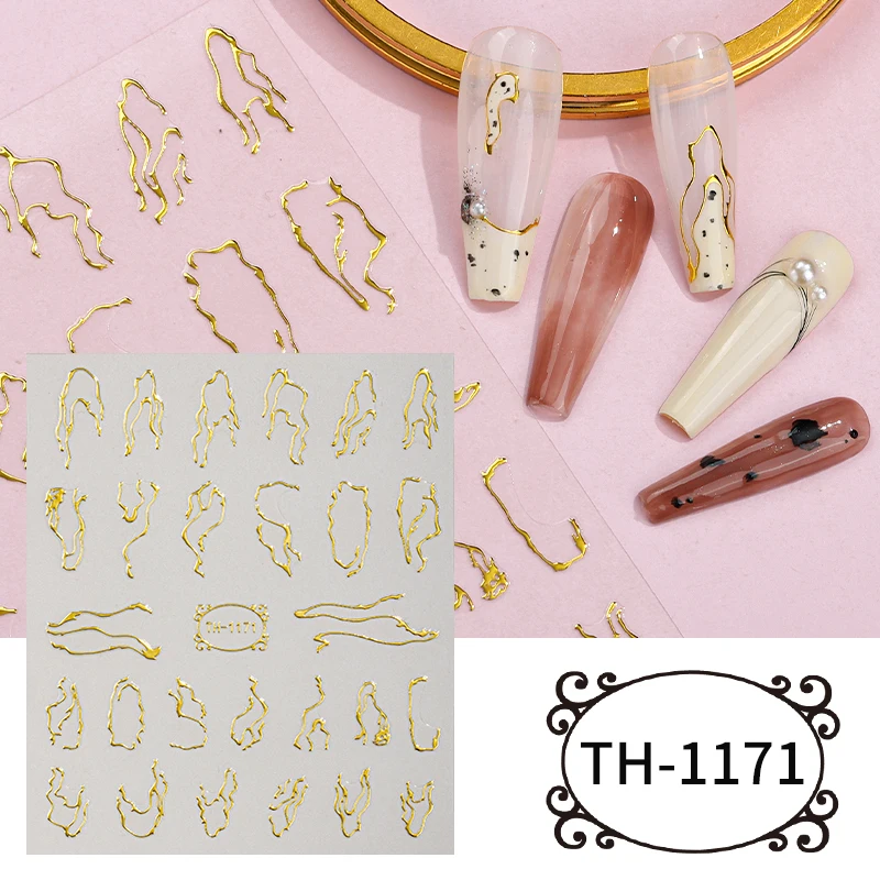 工場価格 2D抽象ペットローズゴールドデカールブロンズラインフィンガーネイルステッカー