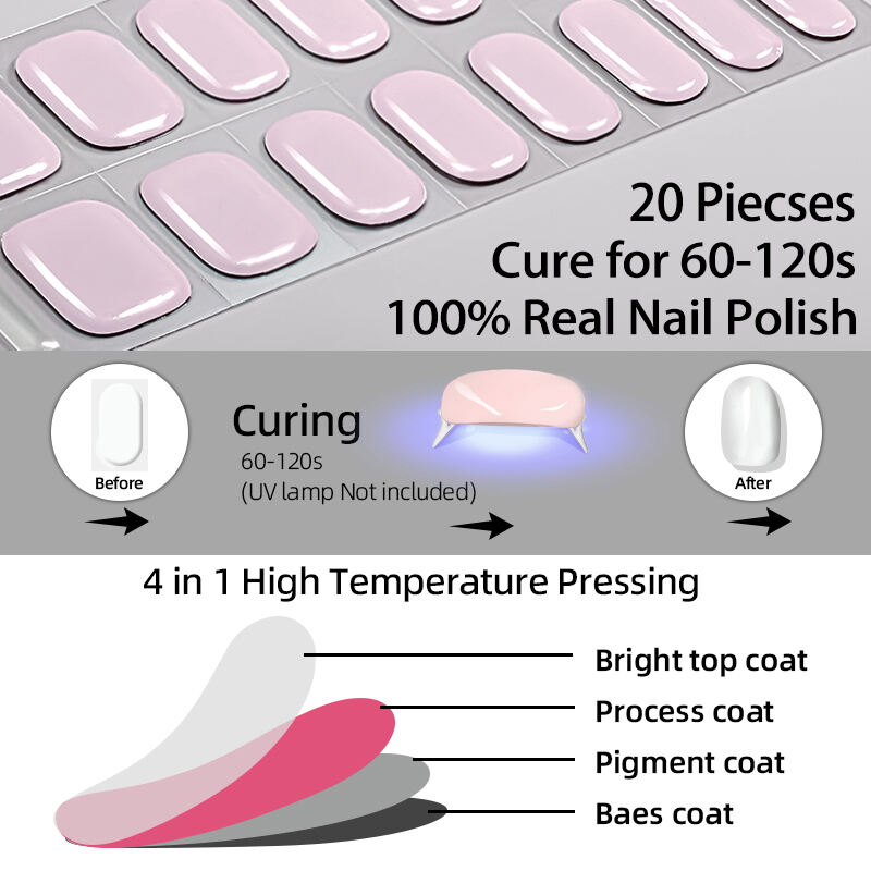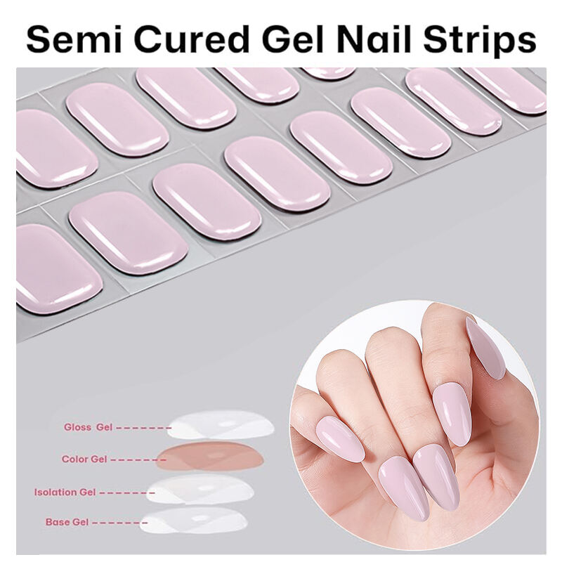 New Desgin Semi-Cured Gel Nail Strips Waterproof UV Hardening Stickers Hypoallergenic Long-Lasting Semi Cured Gel Nail Stickers