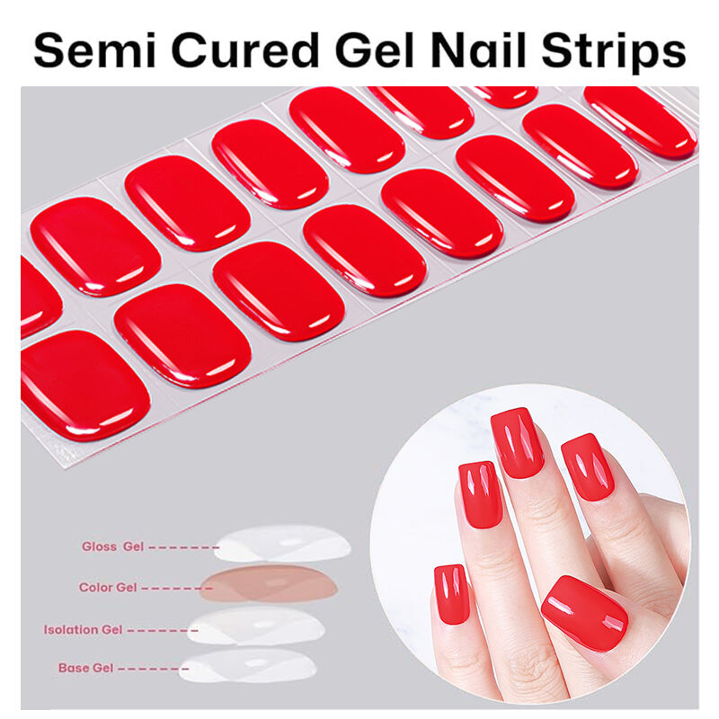 New Products Most Popular 16pcs Colorful Translucent Jelly Texture UV Harden Semi Cured Nail Gel Strips