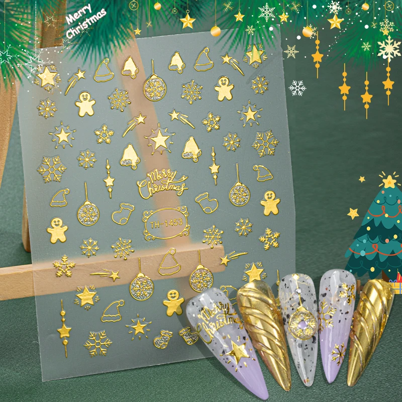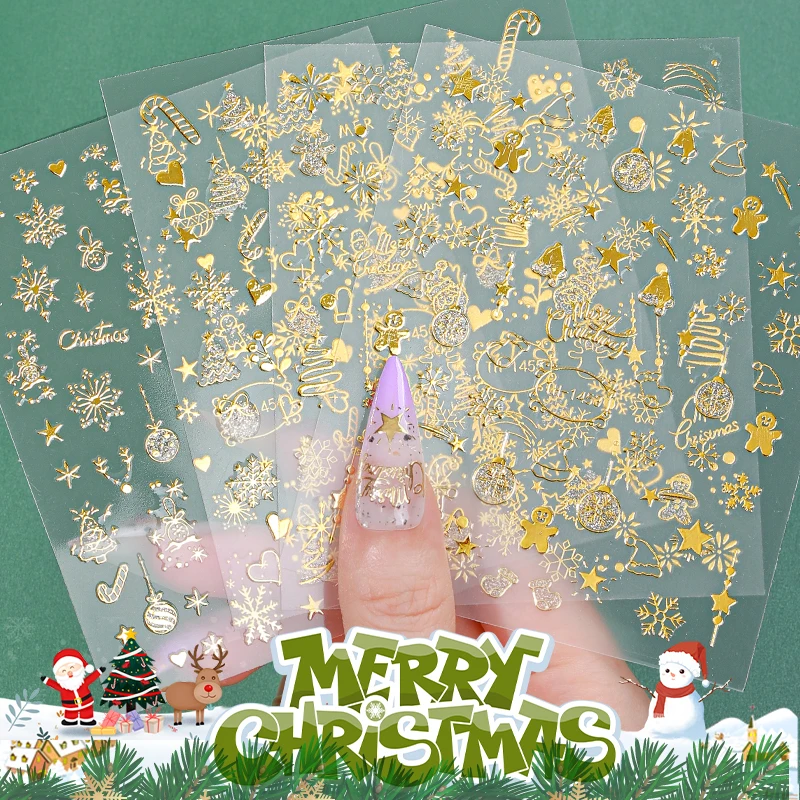 Fabrieksrecht Groothandel Gouden Stempeling Aluminiumfolie Nageldecoratie Zelfplakkerige Kerstnagelsticker
