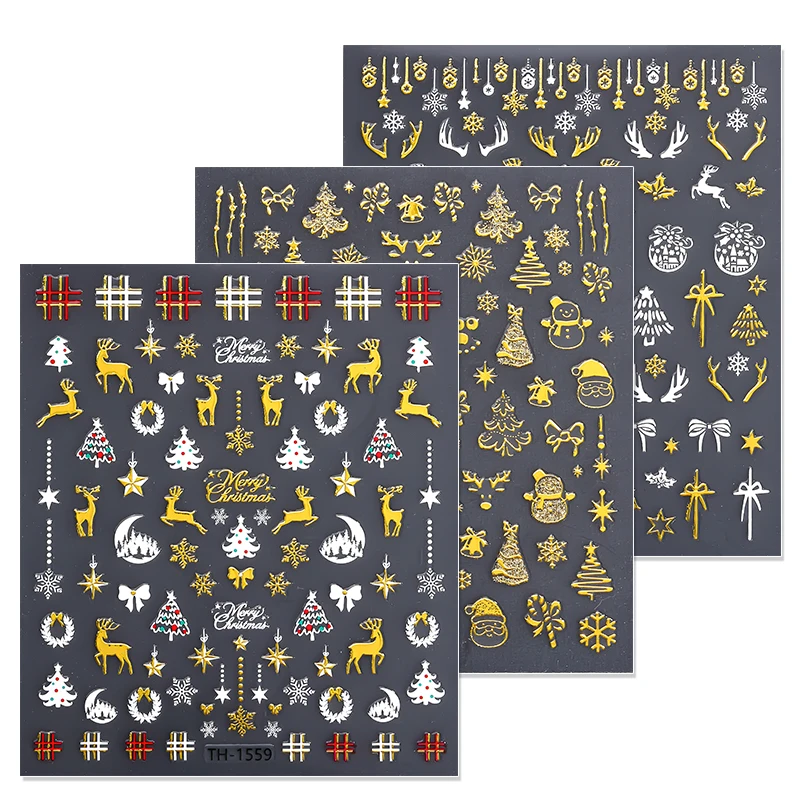 Custom New Design Flower Foil Snowman Merry Christmas Nail Art Decals Stickers in Big Bulk