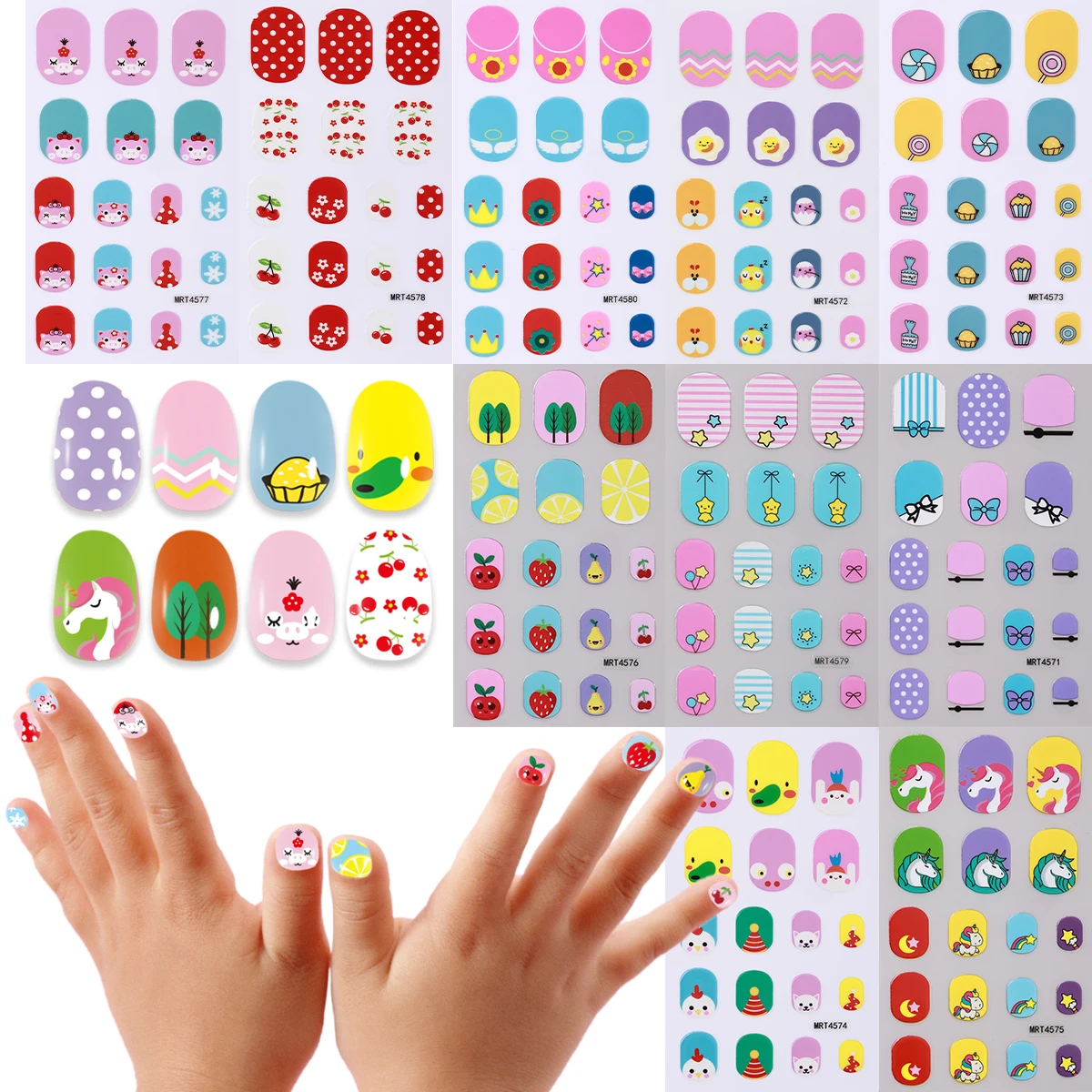 Custom Non-Toxic Self-Adhesive Full Wraps Safe Carton Toys for Kids Nail Art Decoration Waterproof 3D Summer Style