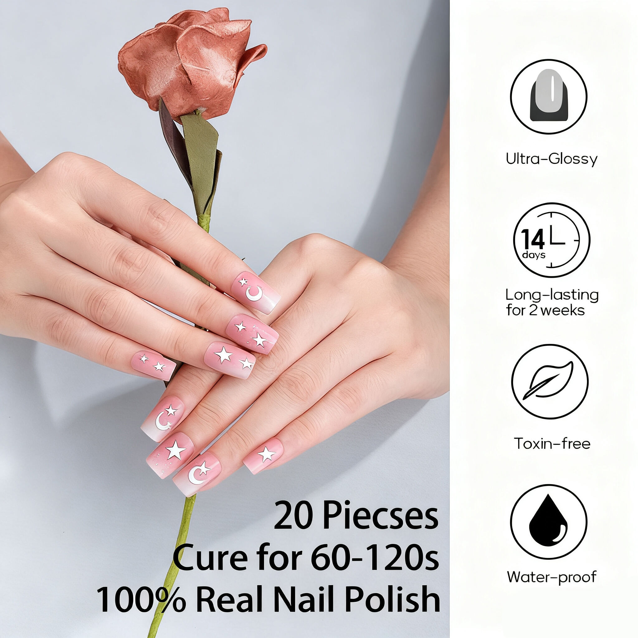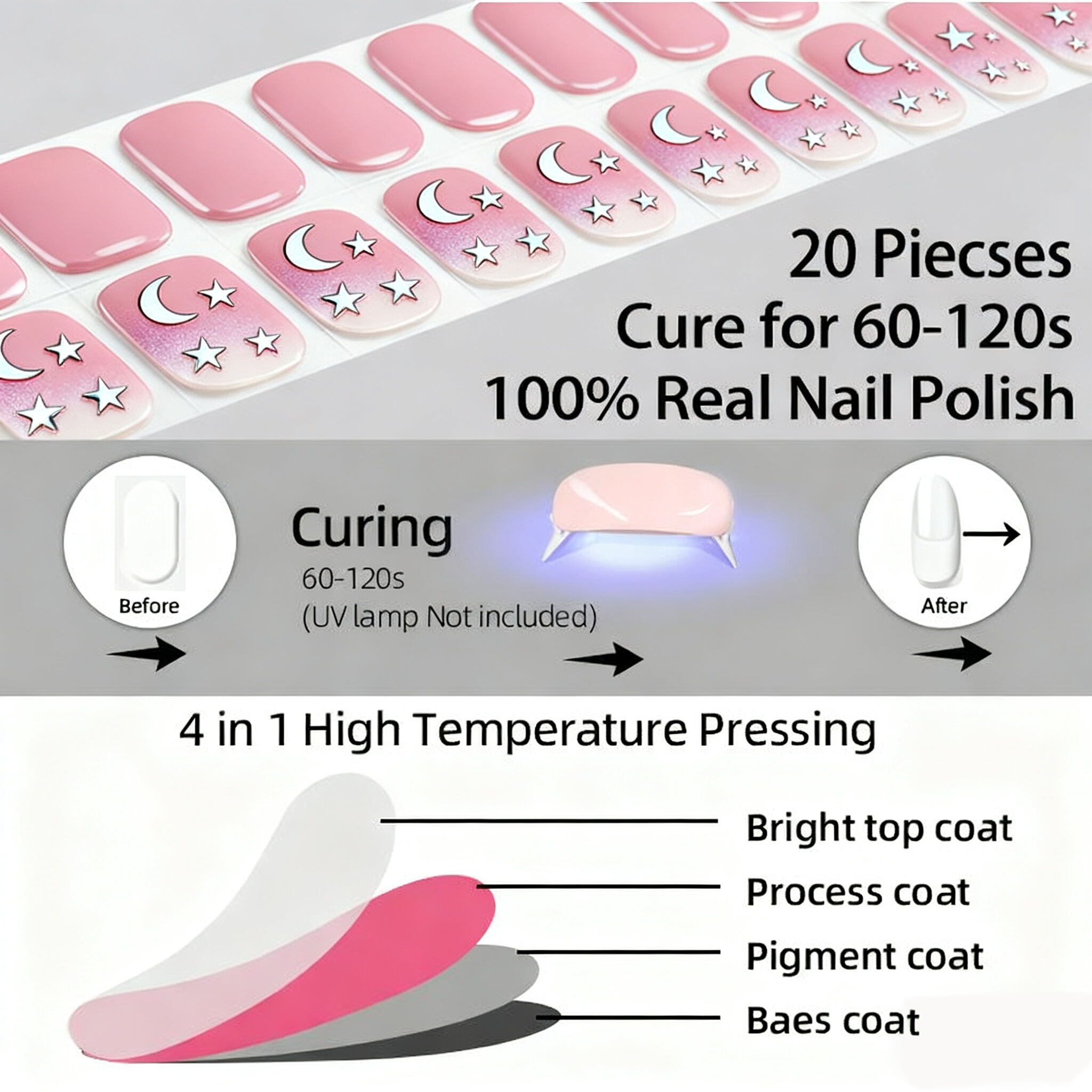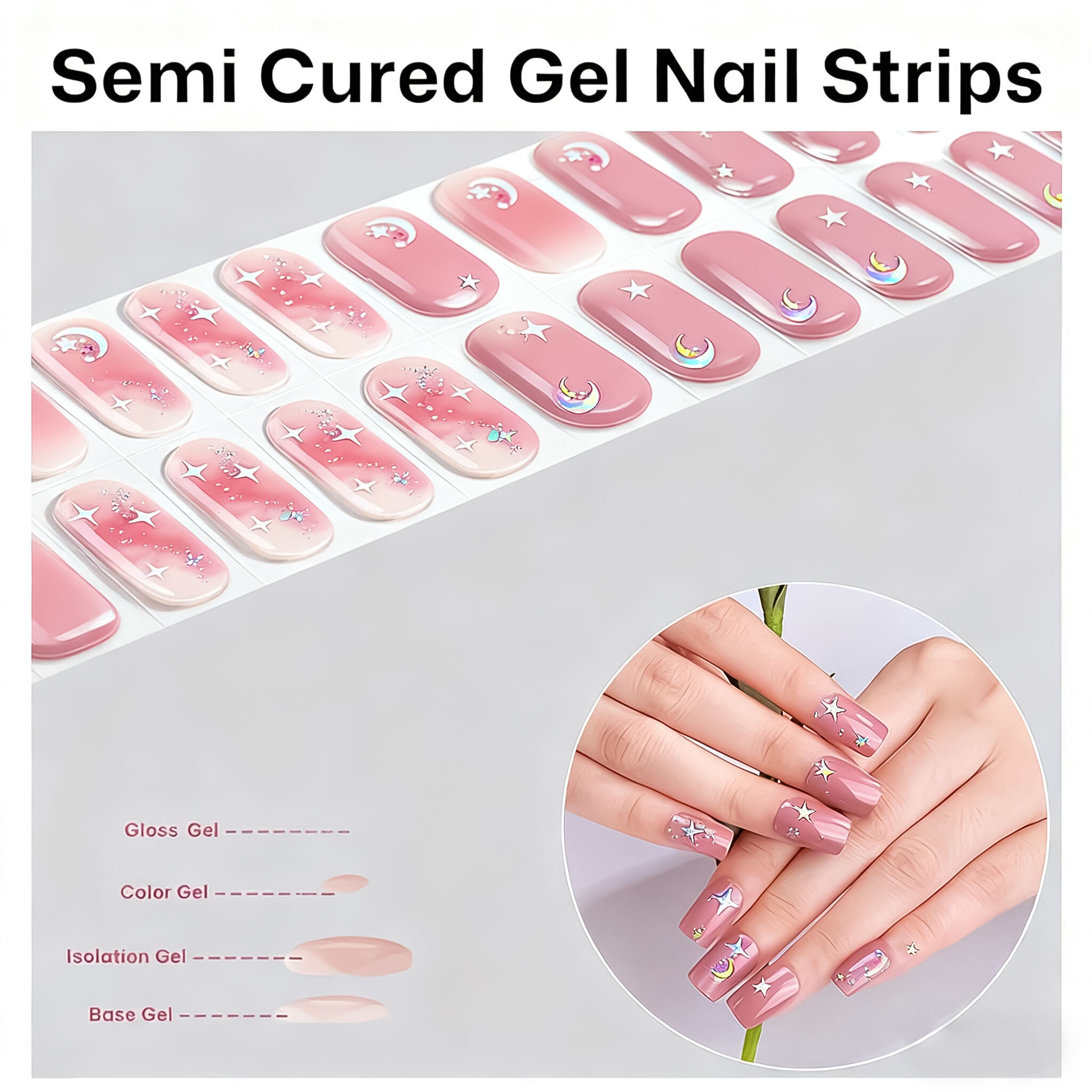 Semi Cured Gel Nail Strips 20PCS French Design UV Gel Nail Sticker Gel Nail Wraps UV Light Required
