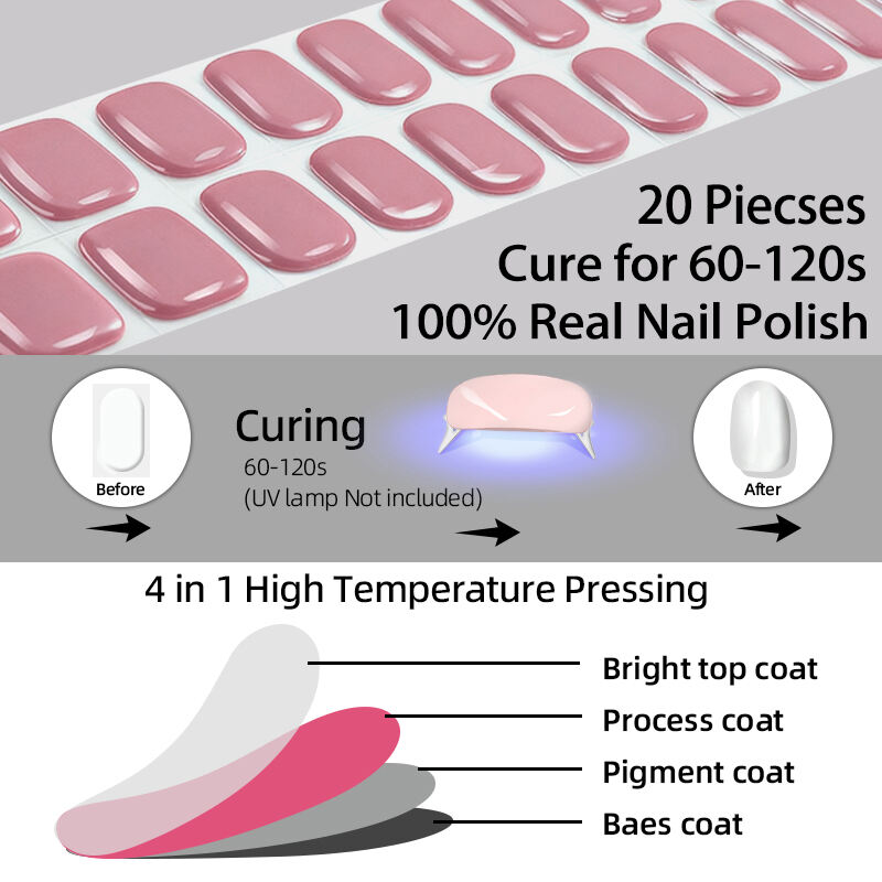 Engrosräkningsanpassad salongskvalitet hög glans enfärgade semigenomhårdnade nagelgelpolersremsor, behöver UV-lampa för härdning